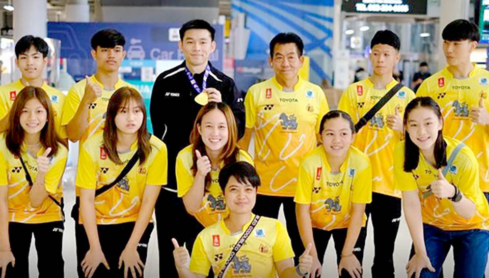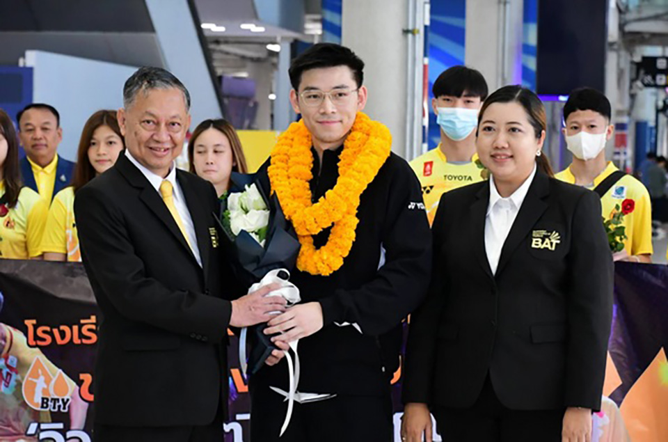He arrived at Suvarnabhumi Airport earlier this morning, where he was warmly welcomed by Air Chief Marshal Monthon Sutchukorn, the vice president of the Badminton Association of Thailand, and Kamala Thongkorn, the director of the Thongyod School Badminton Academy, along with his family.