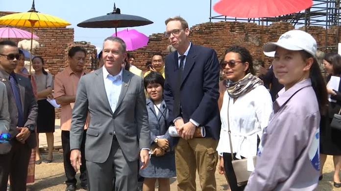 AYUTTHAYA (NNT) The Embassy of the United States in Bangkok, together with the Fine Arts Department of the Ministry of Culture and the World Monuments Fund (WMF), have reiterated their support for renovation work to conserve Chaiwatthanaram temple in Ayutthaya Historical Park with a visit, observing that the efforts have progressed by 40 percent.