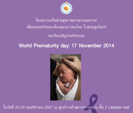 The objective is to raise public awareness of the serious issues faced by preterm babies and their families. This is the first year that Thailand has joined world nations in the celebrations. The event also complements Her Royal Highness Princess Srirasmi’s efforts to help infants born premature and their mothers in all parts of the country, which have been launched through the Thai Maternal and Child Health Network.