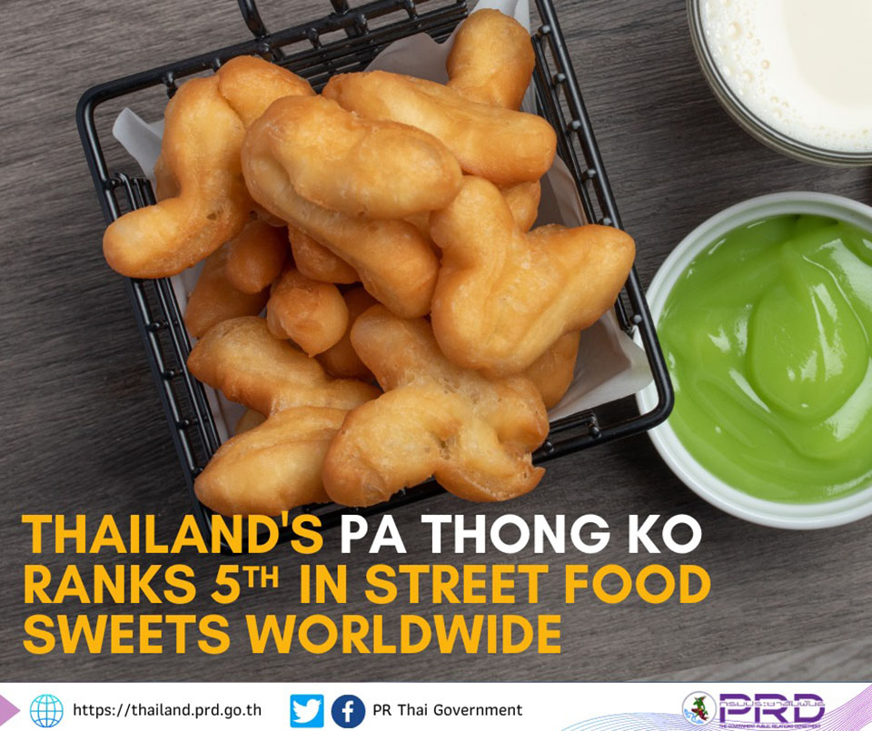 Pa thong ko, Thailand’s popular fried dough snack, was ranked fifth among the world’s top 10 ‘street food sweets’ by TasteAtlas, a travel guide platform.