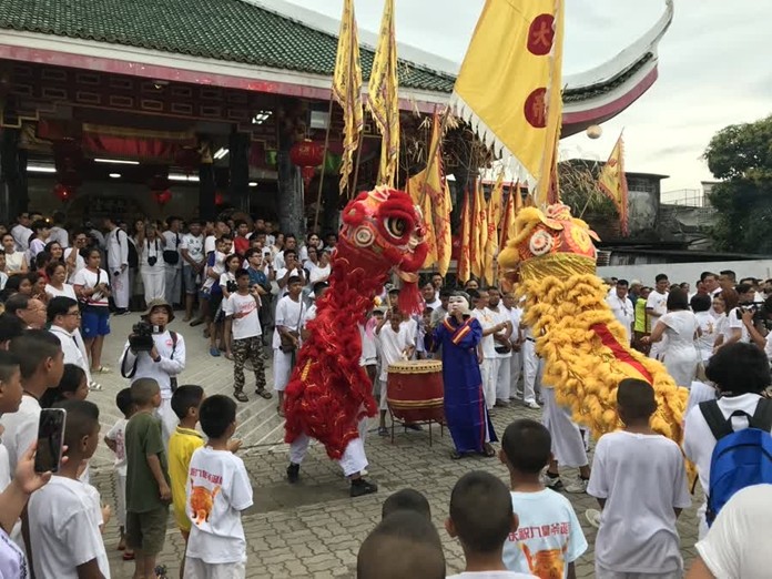 Highlights of the opening ceremony on Phuket were dragon and lion dances, a cultural performance by the Confucius Institute and a show entitled “Beautiful China” presented by students from Kathu Witthaya School. There were also booths selling vegetarian food.