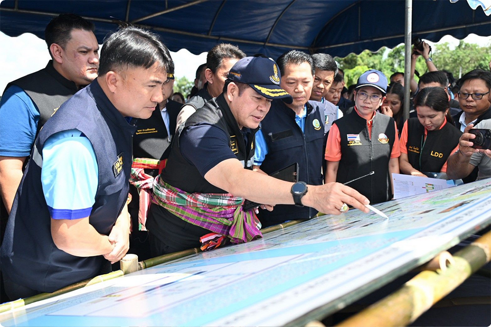 The Deputy Prime Minister and his delegation team reviewed ongoing water management efforts in the Kok River Basin and later visited the Wiang Chai District Office to hear directly from local communities. They also distributed agricultural assistance, including land title deeds, fish breeds, and bio-fertilizers, to farmers affected by recent floods.