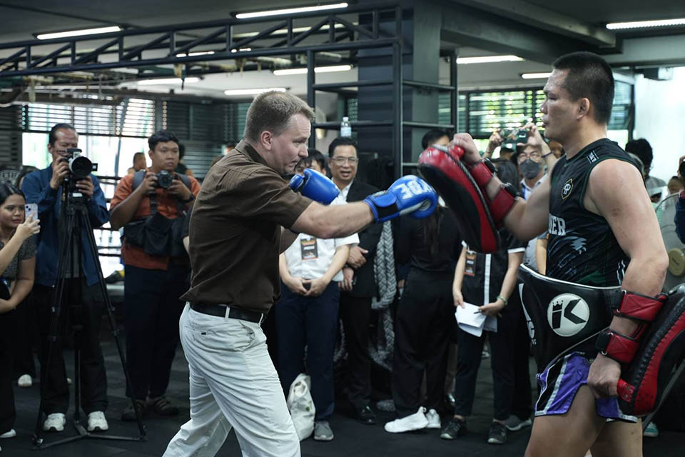 The Government Public Relations Department’s Foreign Office organized the activity “The Art of Muay Thai: Promoting the Image and Creative Economy” on 22 March 2024 at Petchyindee Academy Muay Thai Camp, Lumpini Boxing Stadium, and the Asawin Grand Convention Hotel, Bangkok. The guests were representatives from foreign ambassadors in Thailand, Thai and foreign media members, and key opinion leaders, approximately 80 people in all. The activity was held in order to ensure that the soft power of Muay Thai becomes better known internationally, leading to the creation of even more economic value.