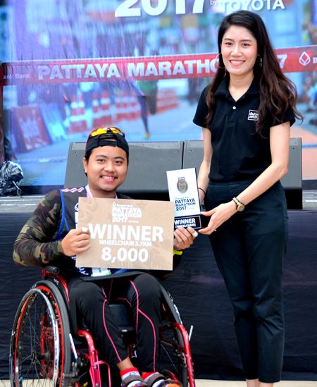 The winners of the male and female half-marathon races were respectively Godfrey Kiprotich Ngetich (1:15:30) and Rosemary Mumo Katua (1:27:27) who picked up 10,000 baht each while the quarter-marathon saw home winners in the form of men’s winner San­chai Namkhet (00:35:07) and women’s champion Natthaya Thanaronnawat, who broke the tape in a time of 00:44:52.  The quarter marathon and wheelchair race winners all received commemorative trophies and 8,000 baht in cash prizes.