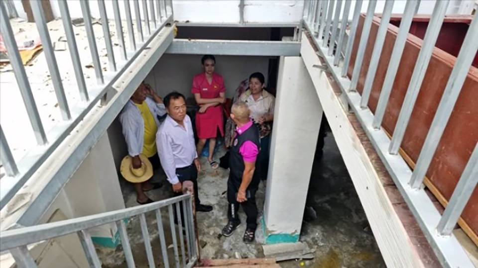 The storm caused significant damage to the roofs and structures of several houses, with one particularly hard-hit home belonging to 83-year-old Uraiwan Maikaew and 85-year-old Boonchuey Sali. Their roof and tiles were completely blown away, and their belongings were scattered throughout the house. Boonchuey recounted that, before the storm hit, he and his wife were resting outside when the powerful winds and rain struck. The roof was ripped off before their eyes, and they were forced to take shelter on the floor as debris fell around them.