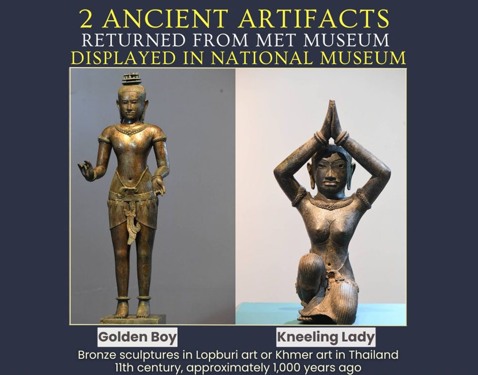The Golden Boy and the Kneeling Female were deaccessioned from the collection of the Metropolitan Museum of Art (The MET) in New York because they were found to have been illegally taken out of the Kingdom of Thailand. As requested by Thailand’s Ministry of Culture, it was deemed appropriate to return them to Thailand.