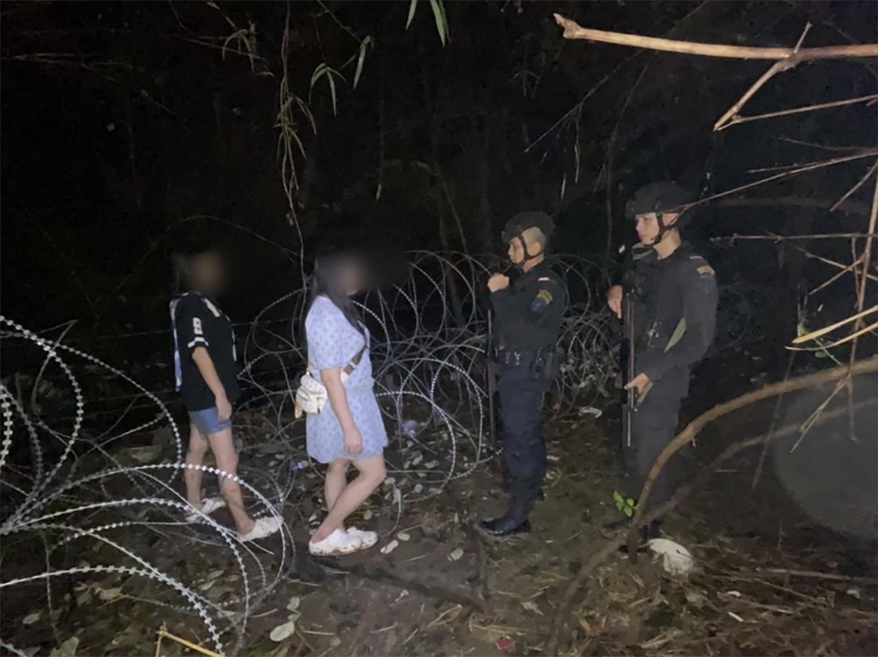 According to reports, last night, the Burapha Task Force, along with Aranyaprathet special units and the 12th Ranger Regiment patrol team, tightened security along the border. While patrolling near Klong Luek border crossing, officers spotted two women climbing over concertina wire barriers from Cambodia into Thailand near Dong Ngoo village, Pa Rai subdistrict, Aranyaprathet district.