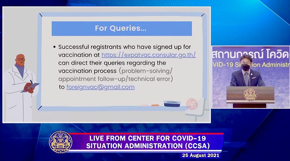 - Successful registrants who have signed up for vaccination at https://expatvac.consular.go.th can direct their queries regarding the vaccination process (problem-solving/appointment follow-up/technical error) to [email protected]