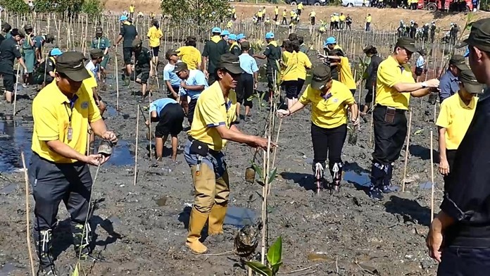 Volunteers plant mangrove forest in Chumphon