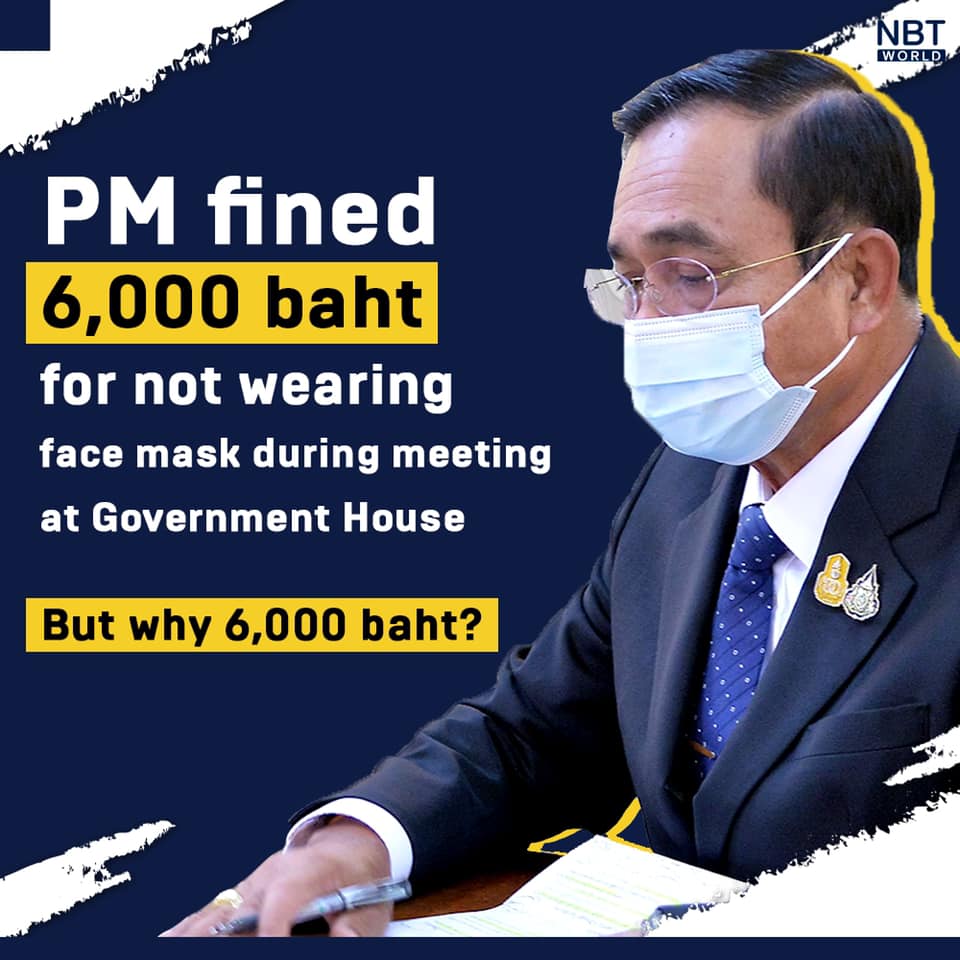 PM Prayut falls under the first time offender and was therefore fined 6,000 baht.
