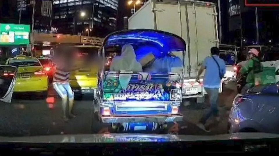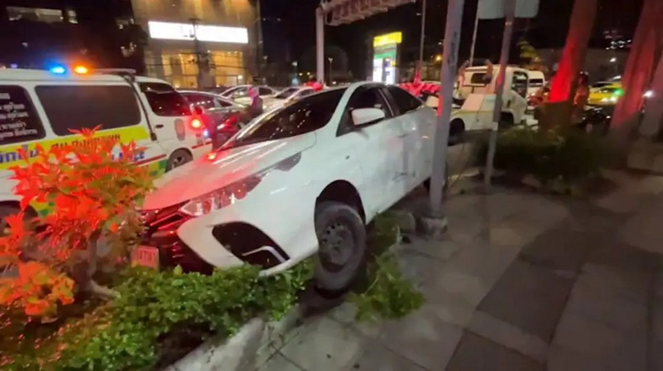 The suspect later explained that she worked as a Bolt driver and had left her home on Ratchaphruek Road in Thonburi to pick up a friend at Hua Lamphong. As she neared the Kronos building, she collided with a Honda car that made a sudden U-turn. After the crash, she lost control, both mentally and physically, believing she was under threat, which prompted her to ram other cars. Her vehicle eventually veered onto the sidewalk, where it became immobilized. Still convinced someone was after her, she grabbed the gun, which was unloaded, and ran out to confront the tuk-tuk passengers.