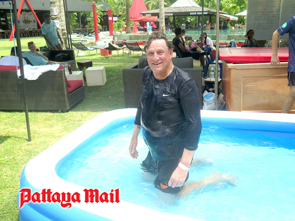 The last PCC match of the day was the Thoroughbreds versus Lamphun. The kids from Lamphun were hard to bat against and they ran like whippets across the sand, so a win was unlikely. The Thoroughbreds batted first with Eddie who was bowled 4th ball by Ton for a -3. We didn’t think it was fair or wise to put a 78 year-old in the ice-cold water of the duck pond – after all we needed him for 2 more games. Simon scored a few as did Trevor and Reds, but nothing much. Crunch was bowled and got -3, so another visit to the pond and the score reduced to just 10. Andy S managed a few singles against Chuan, but 13 was a very poor score.
