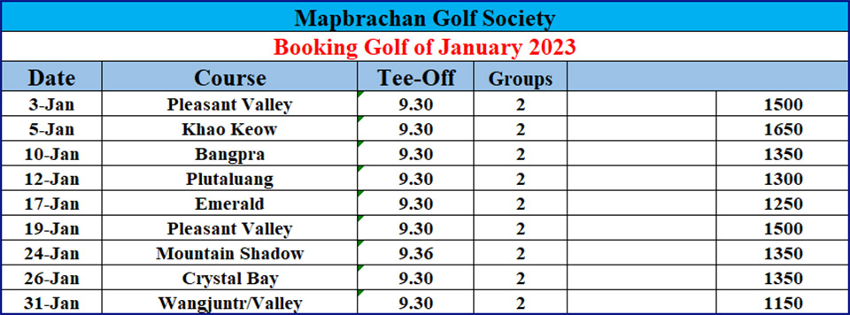 Pattaya Sports Club Mabprachan Golf Society weekly report