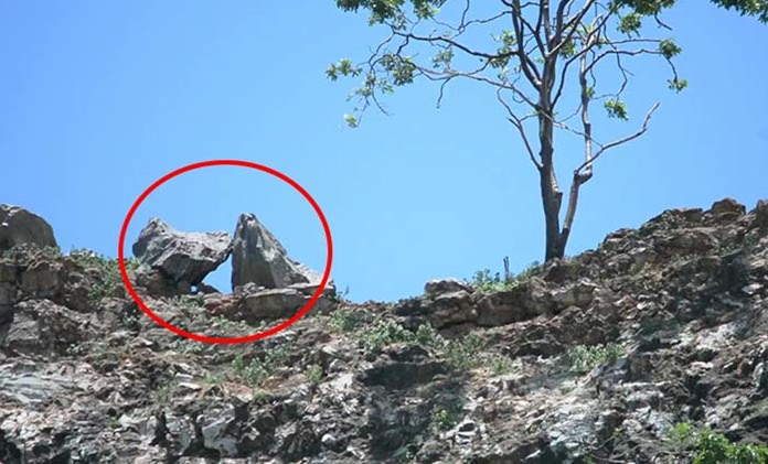 An interestingly shaped rock formation atop a mountain in Hin Khao Ngoo Park has attracted throngs of tourists after being posted to social media.
