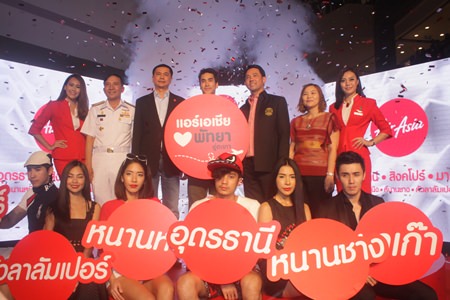 Airport Director Vice Adm. Wisansap Chanwarin joined Pattaya Mayor Itthiphol Kunplome and Tourism Authority of Thailand Pattaya office Director Suladda Sarutilavan at Central Festival Pattaya Beach Sept. 28 to announce that the no-frills carrier would launch daily flights out of the military-run airfield to Macau, Singapore and Udon Thani on Nov 27.
