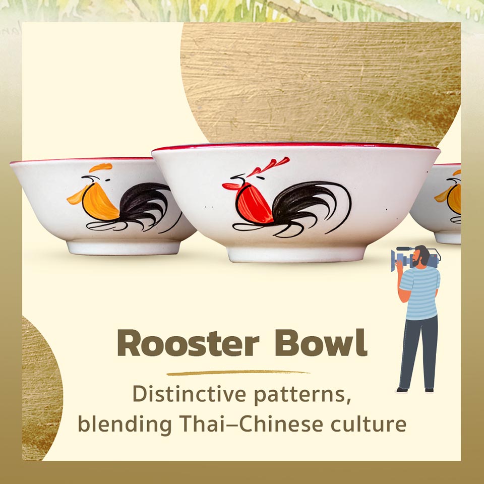 Rooster bowl: An iconic ceramic bowl from Lampang, featuring its distinctive rooster motif and a harmonious blend of Thai and Chinese cultural influences. (TAT)