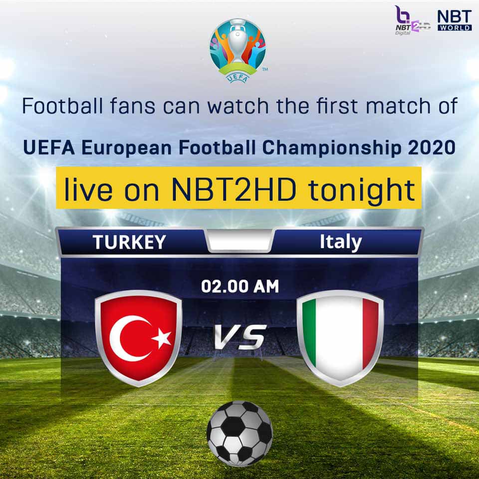 Football fans can watch the first match of UEFA European Football Championship 2021 between Italy and Turkey for free and live on NBT2HD tonight. (NNT)