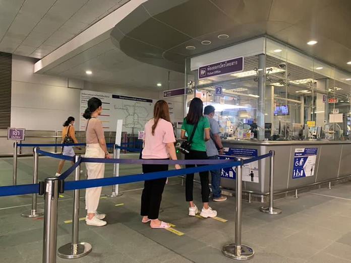 BANGKOK – The Metropolitan Rapid Transit (MRT) has rolled out a social distancing measure by placing lines to separate passengers by a distance of at least one meter, to help contain the spread of COVID-19. The Bangkok Metropolitan Administration (BMA) has encouraged people to be disciplined and follow the health authorities’ advice.