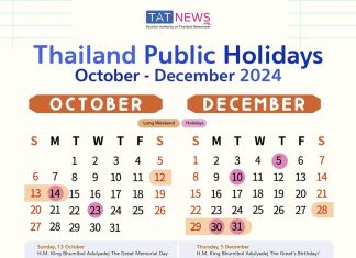 Public holidays and long weekends in October- December