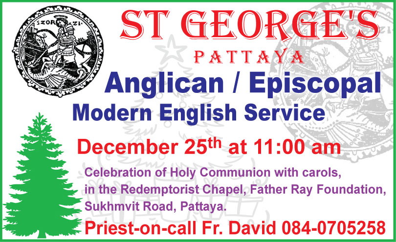 What's On in Pattaya-Thailand ST GEORGE’S Pattaya Anglican/Episcopal Modern English Service December 21, 2018 0 3129 Share on Facebook Tweet on Twitter tweet
