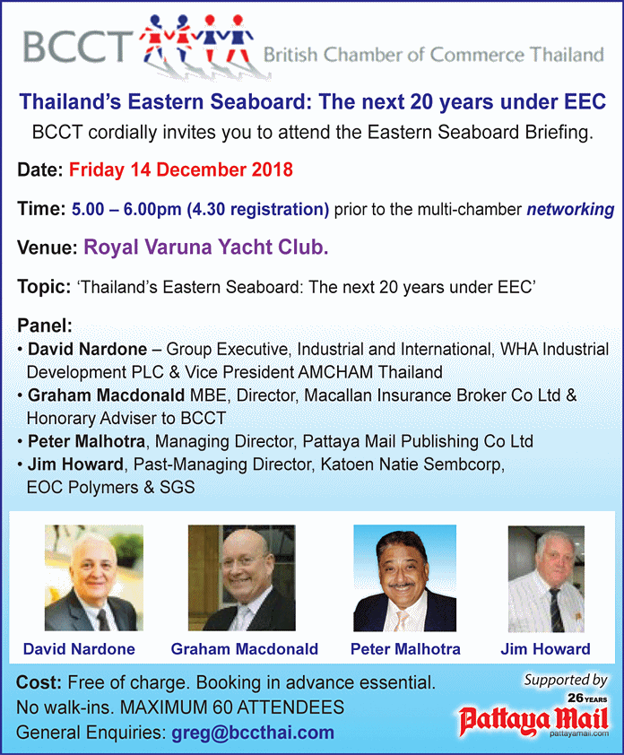 What's On in Pattaya-Thailand Thailand’s Eastern Seaboard: The next 20 years under EEC December 6, 2018 0 2672 Share on Facebook Tweet on Twitter tweet